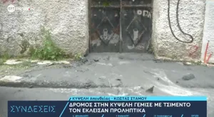 Υγρό τσιμέντο αναβλύζει η αυλή ενός εγκαταλελειμμένου κτιρίου στην Κυψέλη, με αποτέλεσμα να έχει υπάρξει διακοπή της κυκλοφορίας σε κεντρικούς δρόμους της περιοχής και συγκεκριμένα στην οδό Σοφάδων, στην οδό Σκύρου καθώς και στην οδό Ευβοίας.