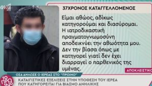 Στον ανακριτή οδηγήθηκε ο 37χρονος ιερέας που κατηγορείται για τον βιασμό 16χρονης ώστε να απολογηθεί. Μετά την υπόθεση που προκάλεσε σάλο, ο ιερέας στα Κάτω Πατήσια ισχυρίζεται ότι η ανήλικη που τον καταγγέλλει για βιασμό ίσως τον είχε ερωτευτεί. «Ίσως να με είχε ερωτευτεί, όμως εγώ δεν ενέδωσα», είπε. Στην τηλεόραση του ALPHA ισχυρίστηκε ότι […]Περισσότερα ...