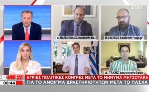 Ένας πρωτοφανής καβγάς για τους εμβολιασμούς ξέσπασε στην πρωϊνή εκπομπή του ΣΚΑΪ ανάμεσα στον βουλευτή της Νέας Δημοκρατίας, Δημήτρη Μαρκόπουλο και στον δημοσιογράφο της «Αυγής», Νίκο Σβέρκο. «Έκανε πάρα πολύ κακή εντύπωση το γεγονός ότι ο κ.Μητσοτάκης ουσιαστικά κατηγόρησε όσους πέθαναν επειδή δεν είχαν εμβολιαστεί. Ήταν πολύ ατυχής έκφραση» είπε ο κ. Σβέρκος. «Με έμμεσο […]Περισσότερα ...