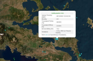 Διπλή ασθενής σεισμική δόνηση σημειώθηκε το μεσημέρι της Παρασκευής (26.09) στη νότια Εύβοια. Οι δύο σεισμοί, μεγέθους 3 και 3,1 βαθμών της κλίμακας Ρίχτερ, καταγράφηκαν σε διάστημα λίγων λεπτών (13:35, 13:41) , με επίκεντρο 9 χιλιόμετρα βόρεια-βορειοδυτικά του χωριού Ζάρακες. Σύμφωνα με το Γεωδυναμικό Ινστιτούτο, το εστιακό βάθος των δονήσεων εκτιμάται στα 12,9 χιλιόμετρα, κάτι που εξηγεί την […]Περισσότερα ...