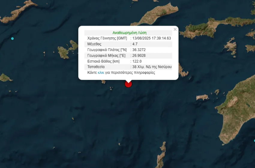 Ισχυρή σεισμική δόνηση ταρακούνησε την Κύπρο το πρωί της Τετάρτης, 12 Νοεμβρίου. Σύμφωνα με τα στοιχεία του Ευρωμεσογειακού Σεισμολογικού Κέντρου, ο σεισμός είχε μέγεθος 5,2 Ρίχτερ και εστιακό βάθος 24 χιλιομέτρων. Το επίκεντρο εντοπίστηκε 42 χιλιόμετρα δυτικά της Λεμεσού και 24 χιλιόμετρα ανατολικά της Πάφου, προκαλώντας αισθητή δόνηση σε πολλές περιοχές του νησιού. Δείτε εικόνα […]Περισσότερα ...