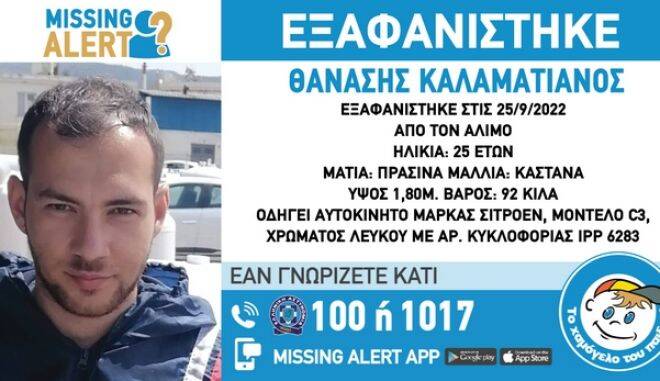 Συναγερμός έχει σημάνει στις αρχές για την εξαφάνιση ενός 28χρονου στο Μαρούσι, τα ίχνη του οποίου εξαφανίστηκαν την Τρίτη (04/04). Το «Χαμόγελο του Παιδιού» ενημερώθηκε για την εξαφάνιση του Πέτρου Τσάκωνα και προχώρησε στη δημοσιοποίηση των στοιχείων του ενήλικα κατόπιν αιτήματος της οικογένειας του, καθώς ενδέχεται να συντρέχουν λόγοι οι οποίοι θέτουν τη ζωή του σε κίνδυνο. […]Περισσότερα ...