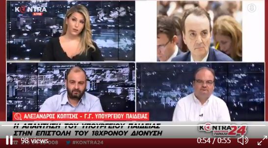 Αίσθηση προκαλεί η τοποθέτηση του γενικού γραμματέα του υπουργείου Παιδείας, Αλέξανδρου Κοπιτή, για τους μαθητές που δεν τα κατάφεραν στις Πανελλήνιες εξετάσεις. Ούτε λίγο, ούτε πολύ ο κ. Κοπιτσής λέει σε εκπομπή του Kontra channel, πως οι “κομμένοι” έχουν τη δυνατότητα να φοιτήσουν σε κάποιο δημόσιο ΙΕΚ, τα οποία ΙΕΚ βρίσκονται τώρα σε φάση αναβάθμισης. […]Περισσότερα ...
